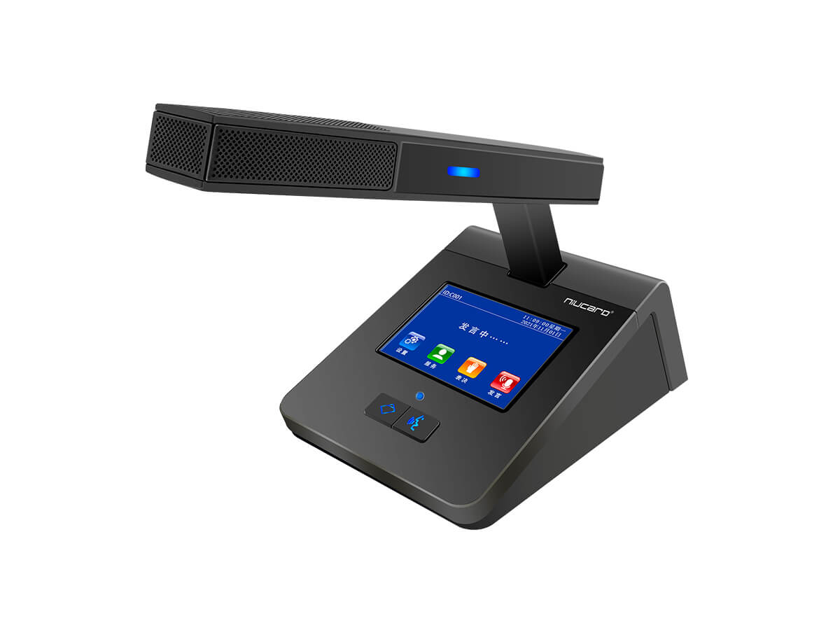 1、经典的方杆话筒设计,配合稳重大方的方形底座,可实现多项会务功能;