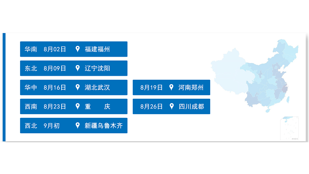这一次,我们和众多行业优秀品牌企业带着新产品、新技术、新思路搭乘慧聪声光视讯行业巡回峰会班机,从广州出发,将一路途经福建福州、辽宁沈阳、湖北武汉、河南郑州、重庆、四川成都、新疆乌鲁木齐,从8月初至9月初,历时一月余,携手当地商协会、汇聚地区行业各领域精英,搭建跨界融合新平台,打造声光视讯人学习交流大会。