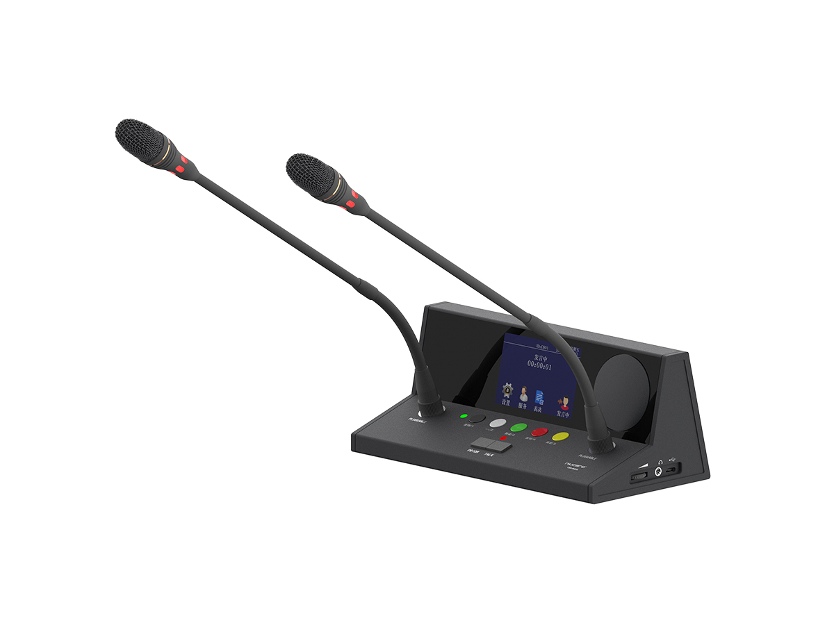 该款会议单元采用鹅颈咪杆,高灵敏度设计,,尽可能避免台面噪声对会议单元拾音的影响。会议单元不仅可以满足正常的发言管理,还支持图片显示,桌牌显示,请求服务等功能。