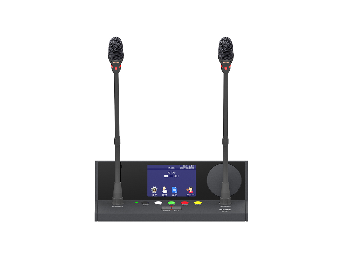 1.红绿双色雾面指示灯设计,指示发言状态。当红色灯环亮时,表示正在发言,当绿色灯环亮时,表示申请等待发言。
