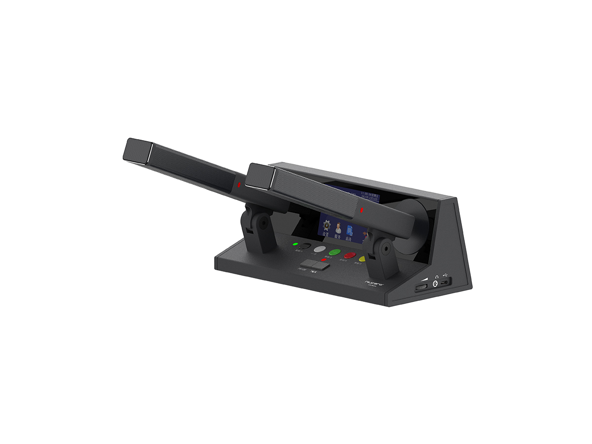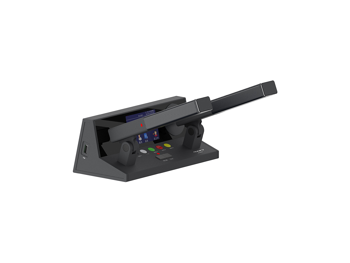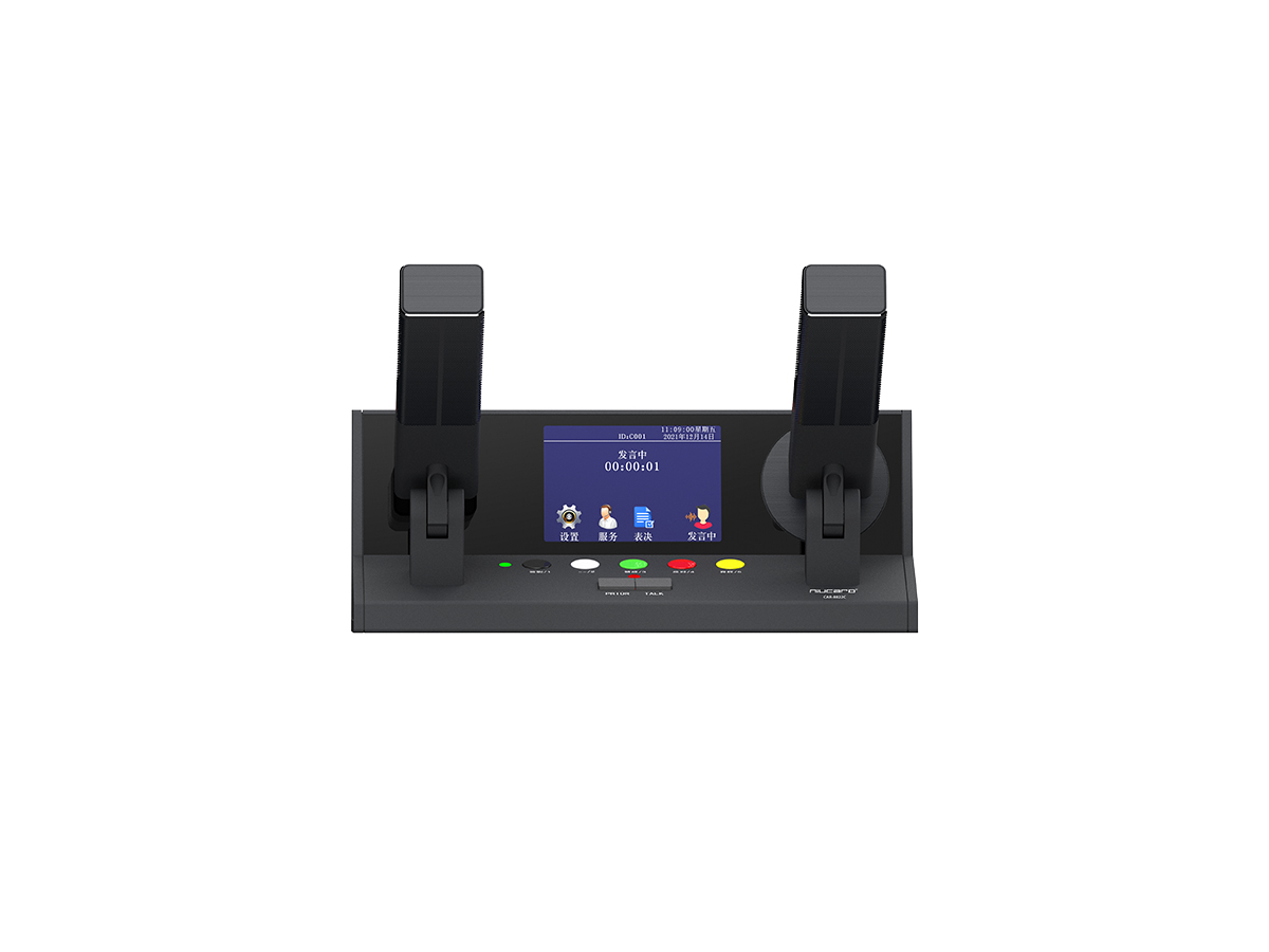 该款会议单元采用柱形短咪杆。满足正常的发言管理,还支持图片显示,桌牌显示,请求服务等功能。