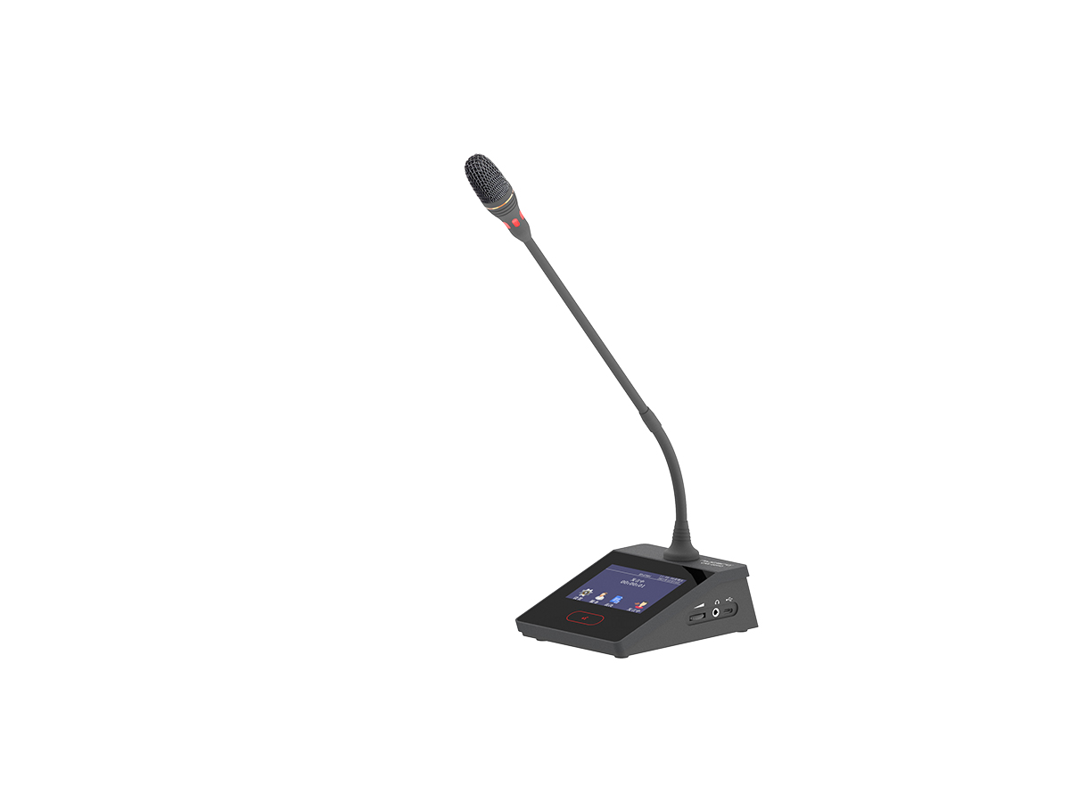 3.单元配备3.5寸触摸显示屏,同时支持触摸屏和物理按键启动发言。