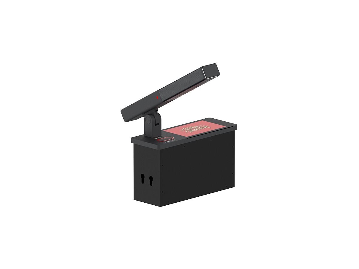 2.红绿双色雾面指示灯设计,指示发言状态。当红色灯环亮时,表示正在发言,当绿色灯环亮时,表示申请等待发言;