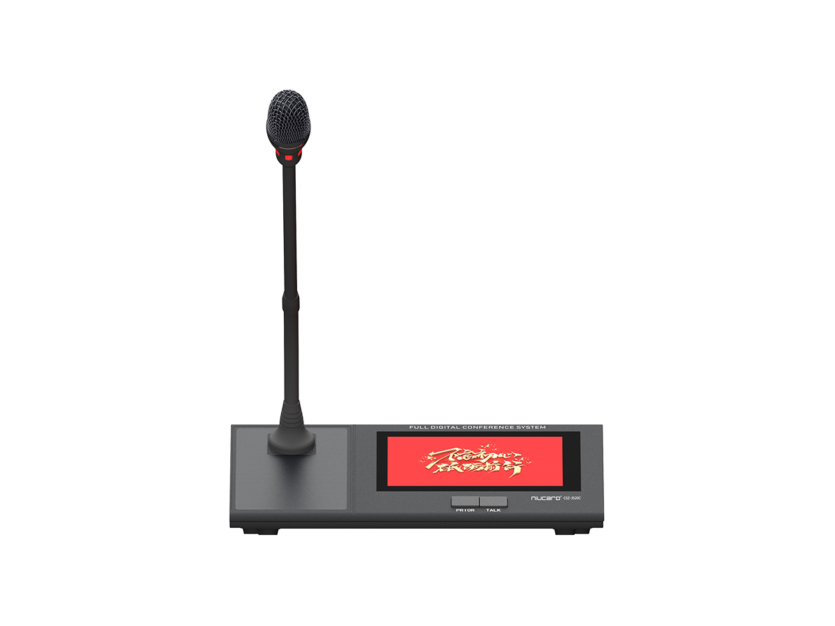 2.红绿双色雾面指示灯设计,指示发言状态。当红色灯环亮时,表示正在发言,当绿色灯环亮时,表示申请等待发言