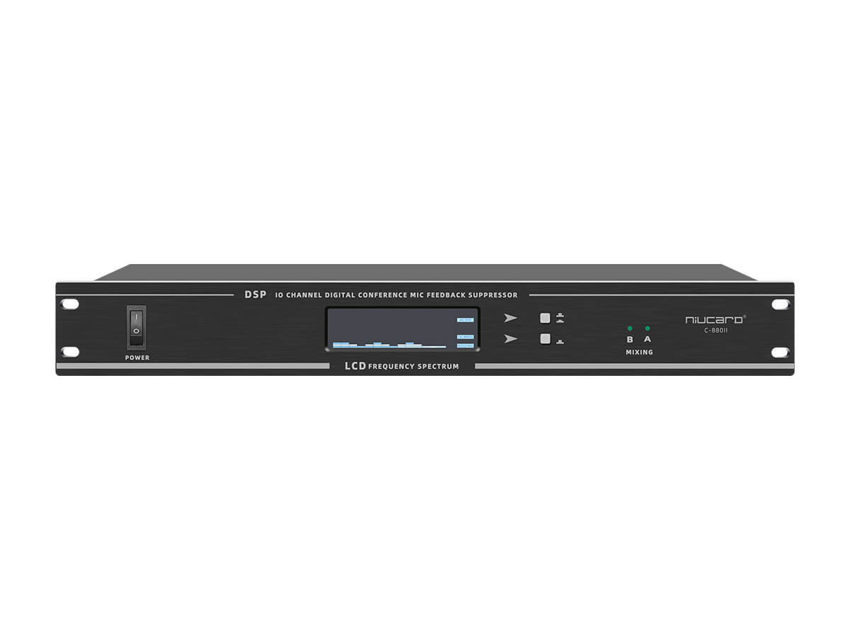 3、采用高效的DSP处理器,超强防啸叫,即使在环境较差的场合,也能极大限度地抑制回啸,能有效地防止烧坏音响设备和喇叭;