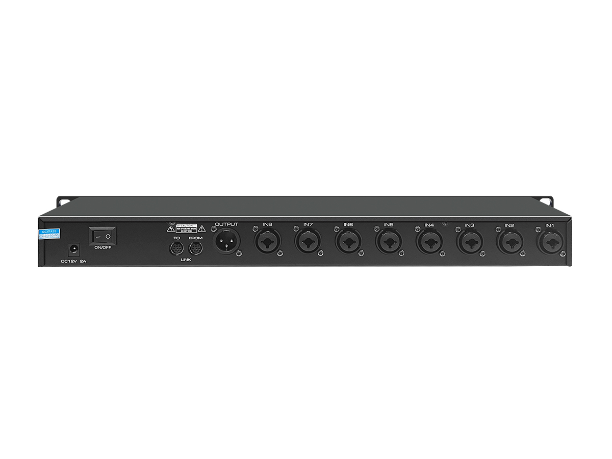 2.本机可以在需要多个话筒的应用场合大幅度提高音响质量,可以将低阻抗动圈话筒或电容话筒一起使用,可将多台自动混音器级联使用,解决反馈前增益不足的问题,语音清晰不掉字;